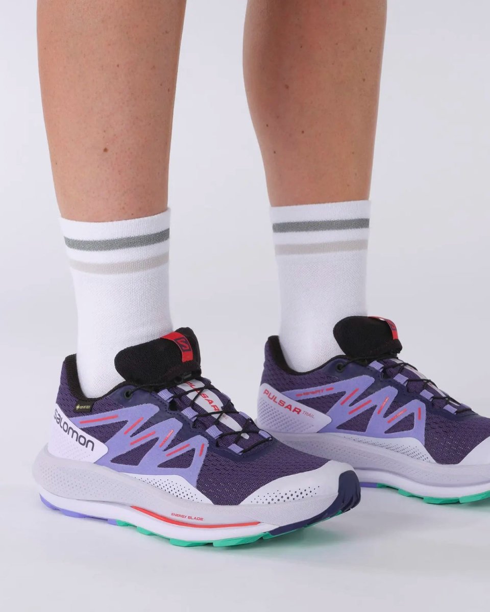 Salomon Pulsar Trail GTX - Astral Aura/Purple Heather/Mint Leaf sind die perfekten Schuhe für ambitionierte Trailrunner. Mit einem bequemen, unterstützenden und wasserdichten Design sind diese Schuhe so konzipiert, dass sie Ihre Füße in jedem Gelände trocken und gestützt halten. Mit Salomons Contagrip-Außensohle und GORE-TEX-Membran bieten diese Schuhe hervorragende Traktion und Wetterschutz für jedes Outdoor-Abenteuer. Die Farbkombinationen Astral Aura, Purple Heather und Mint Leaf verleihen jedem Outfit einen lebendigen, stilvollen Look. Egal, ob Sie auf felsigen Trails oder schlammigen Pfaden unterwegs sind, die Salomon Pulsar Trail GTX-Schuhe sorgen dafür, dass Ihre Füße bequem und geschützt sind.