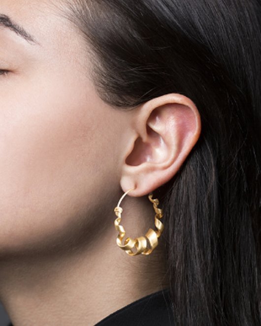 Jane Kønigs Curly Hoop i Gold, er perfekt til både fest og hverdag. Øreringen ligner med sit snoede look nærmest en skulptur, og er et perfekt accessorie til dit outfit. Det er en af vores klare favoritter, og du kan aldrig gå galt i byen med et guldsmykke.