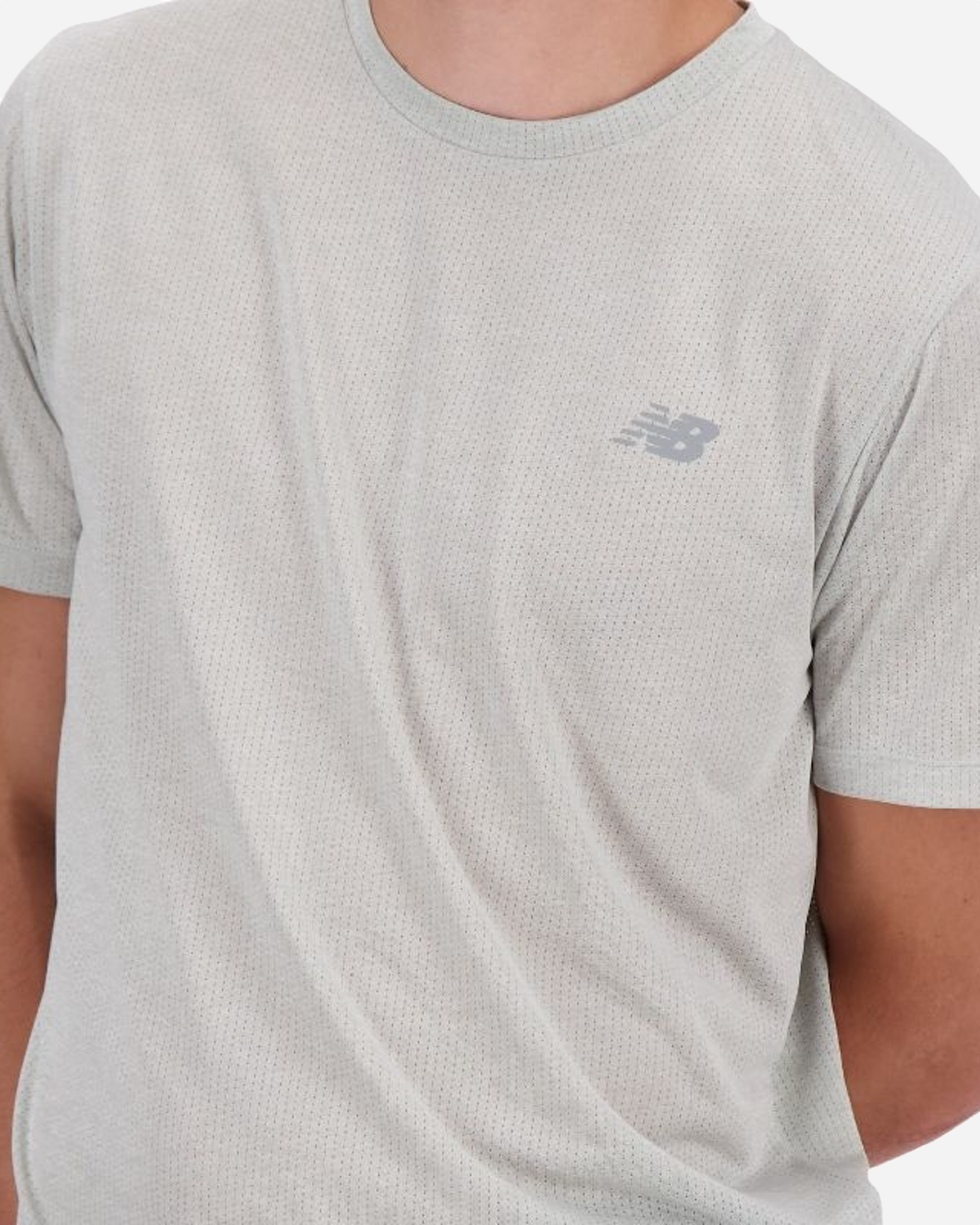 New Balance Athletics T-Shirt - Athletic Grey er en let og behagelig T-shirt, der holder dig afkølet, når du er i gang. NB ICEx hjælper med at tørre hurtigt, så du kan yde mere uden at blive klam. Poly-knit med 95% genanvendt indhold føles blødt mod huden, og de korte ærmer giver god bevægelsesfrihed.
