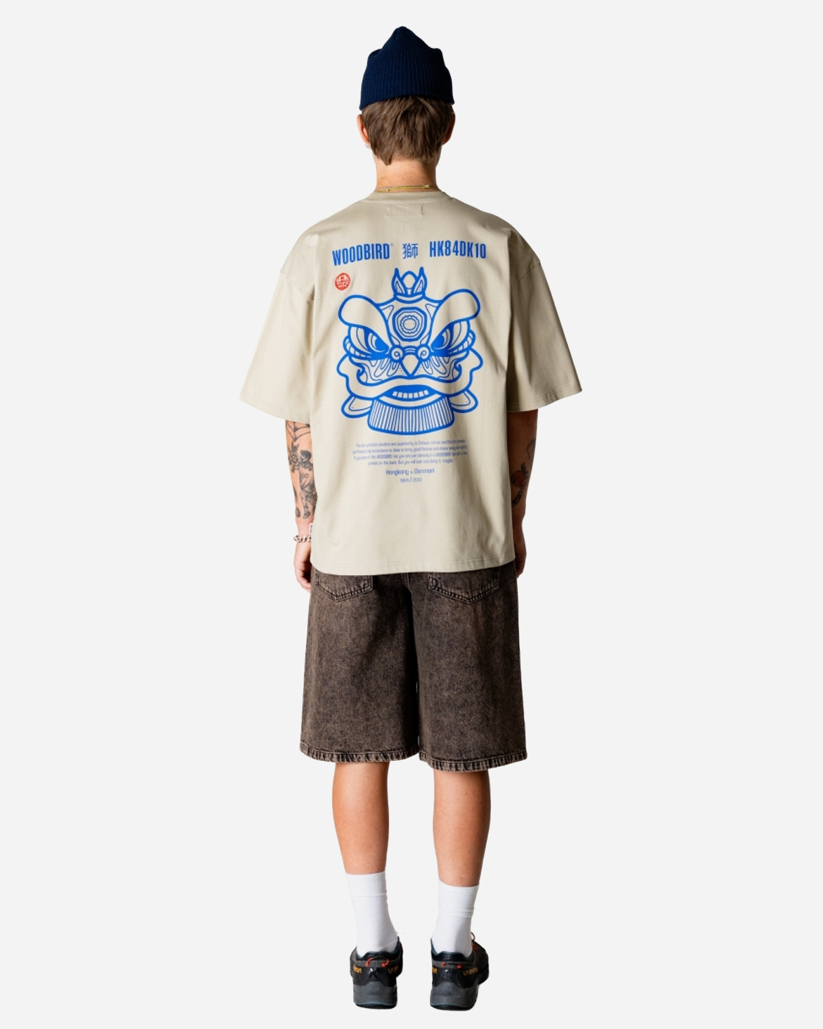 Pasformen er afslappet med lidt længere og bredere ærmer for et nutidigt look. Bagsiden har et detaljeret print med Lion dance mask, og på brystet sidder et centreret Woodbird-logo, som giver et tydeligt grafisk præg. Fremstillet i Indien. Hvis du er til mere dæmpede nuancer, findes modellen også som Beam Lion Tee - Stone.