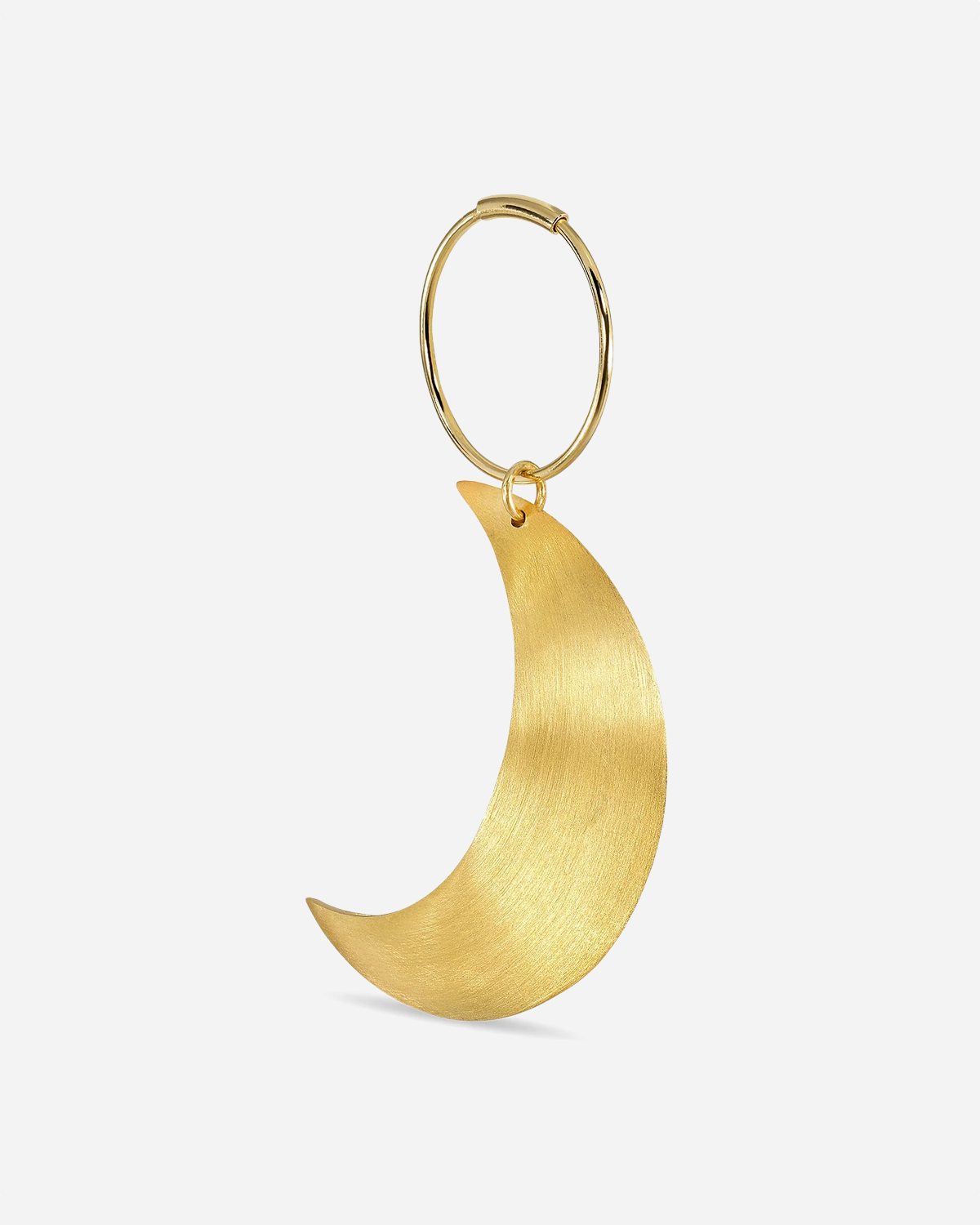Jane Kønig Big Half Moon Creole - Gold giver et elegant statement på den enkle måde. Det er en creole-ørering med en stor halvmåne i børstet guldfinish, hvor den klassiske hoop er let at tage på, og det markante vedhæng fanger lyset og skiller sig pænt ud til både hverdag og fest.