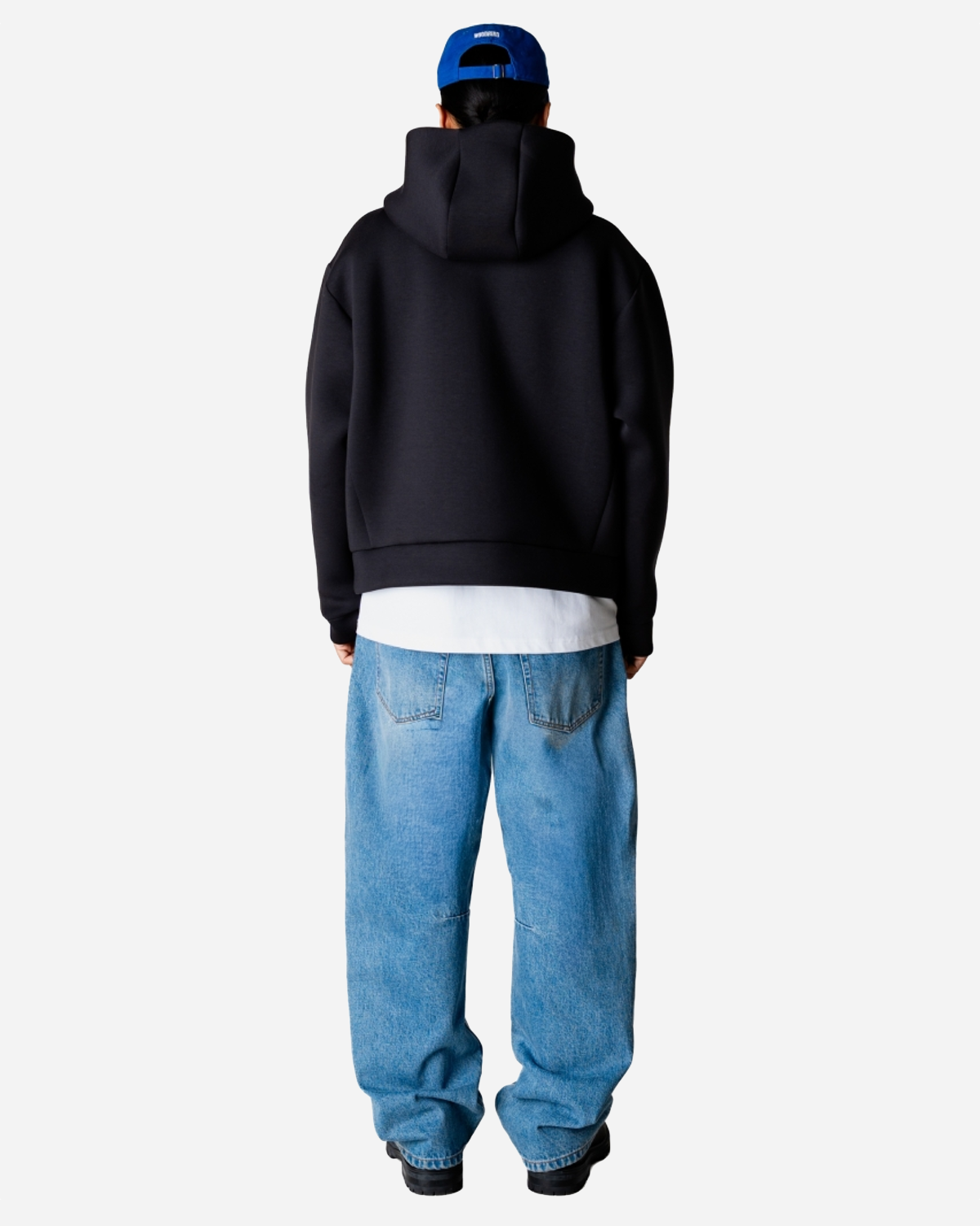 Fuji Scuba Zip Hoodie - Black fra Woodbird er en enkel og velsiddende zip-hoodie i sort. Lynlås foran gør den nem at bruge i hverdagen, og materialet føles blødt med en let, fast struktur, så den holder formen uden at blive tung. Det rene, moderne look gør Fuji Scuba Zip Hoodie - Black til en af de Trøjer, der passer ind næsten overalt.