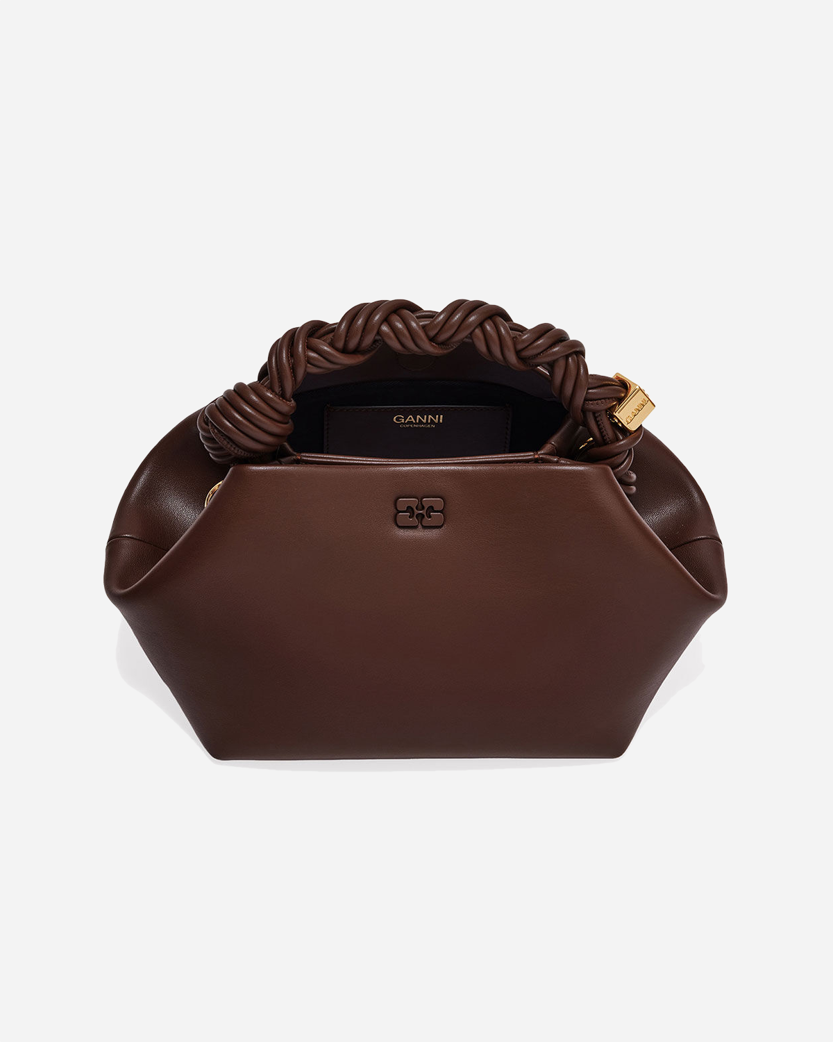 Chocolate Fondant er en dyb brun nuance, der spiller godt sammen med både denim og uld. En genkendelig model i Ganni Bou Bag-serien og et stærkt bud, hvis du kigger efter brugbare tasker fra Ganni.