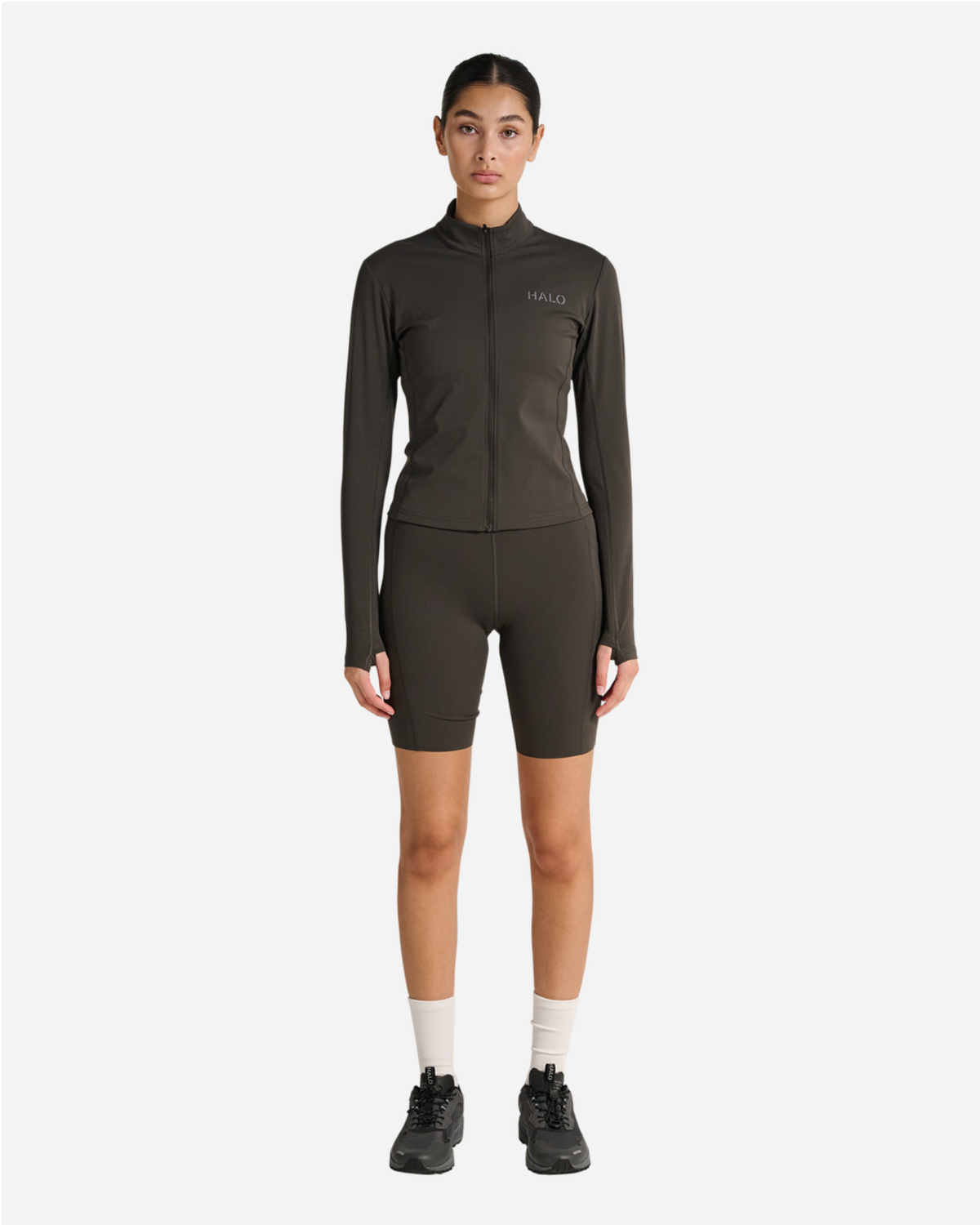 Halo samler en alsidig kollektion, der gør det nemt at bygge garderoben op. Fra T-shirts og toppe til trøjer, sweatshirts, tights, bukser, shorts, jakker og veste finder du det hele samlet ét sted. Delene er gennemførte og spiller godt sammen, så du kan mikse og matche til hverdagen.