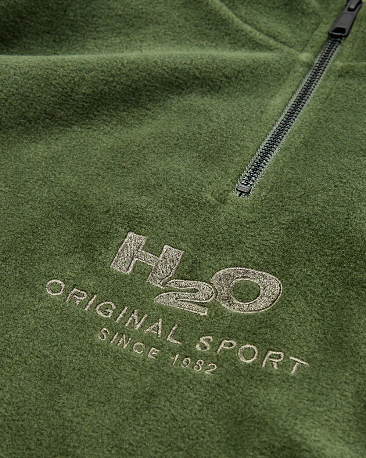 Flot ensfarvet fleece med logo broderi på fronten fra H2O. Fleecen har en høj hals med kort lynlås. Den perfekte fleece til mange forskellige lejligheder.
