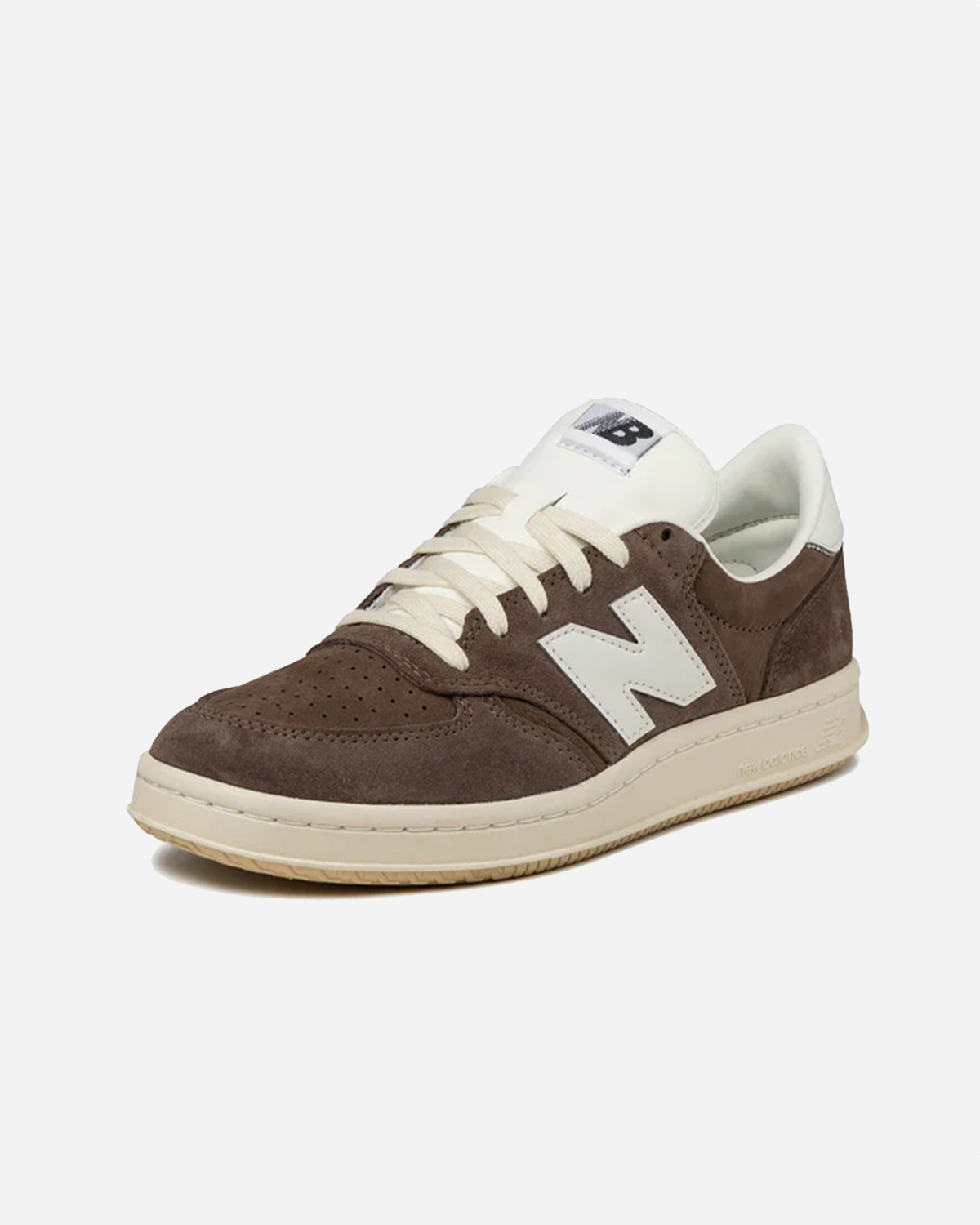 New Balance T500 - Cortado / Sea Salt henter en favorit fra 1982 frem i en ren, rolig stil, der passer ind i hverdagen. Farvesammensætningen blander varme cortado-toner med lyse Sea Salt-detaljer, som giver et afslappet, velafbalanceret look i Sko & Sneakers-kategorien. Overdelen er i ruskind og nubuck med perforeret tåboks for et klassisk, rent udtryk, og det vævede tongue-label sammen med branding på hælen runder designet pænt af.