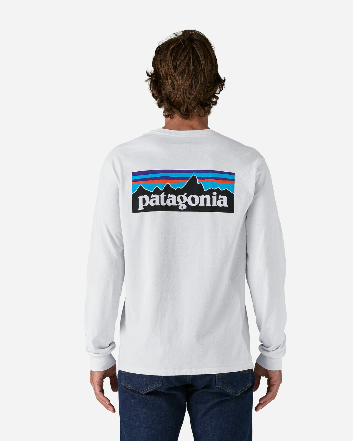 Patagonia M's L/S P-6 Logo Responsibili-Tee - White er en blød jersey T-shirt med lange ærmer, som er nem at bruge i hverdagen og god for samvittigheden. Den er lavet af 100% genanvendte materialer: 50% genanvendt bomuld og 50% post-consumer genanvendt polyester. Det mindsker behovet for nye ressourcer og sparer cirka 96% vand og 45% CO2 sammenlignet med almindelige T-shirts.
