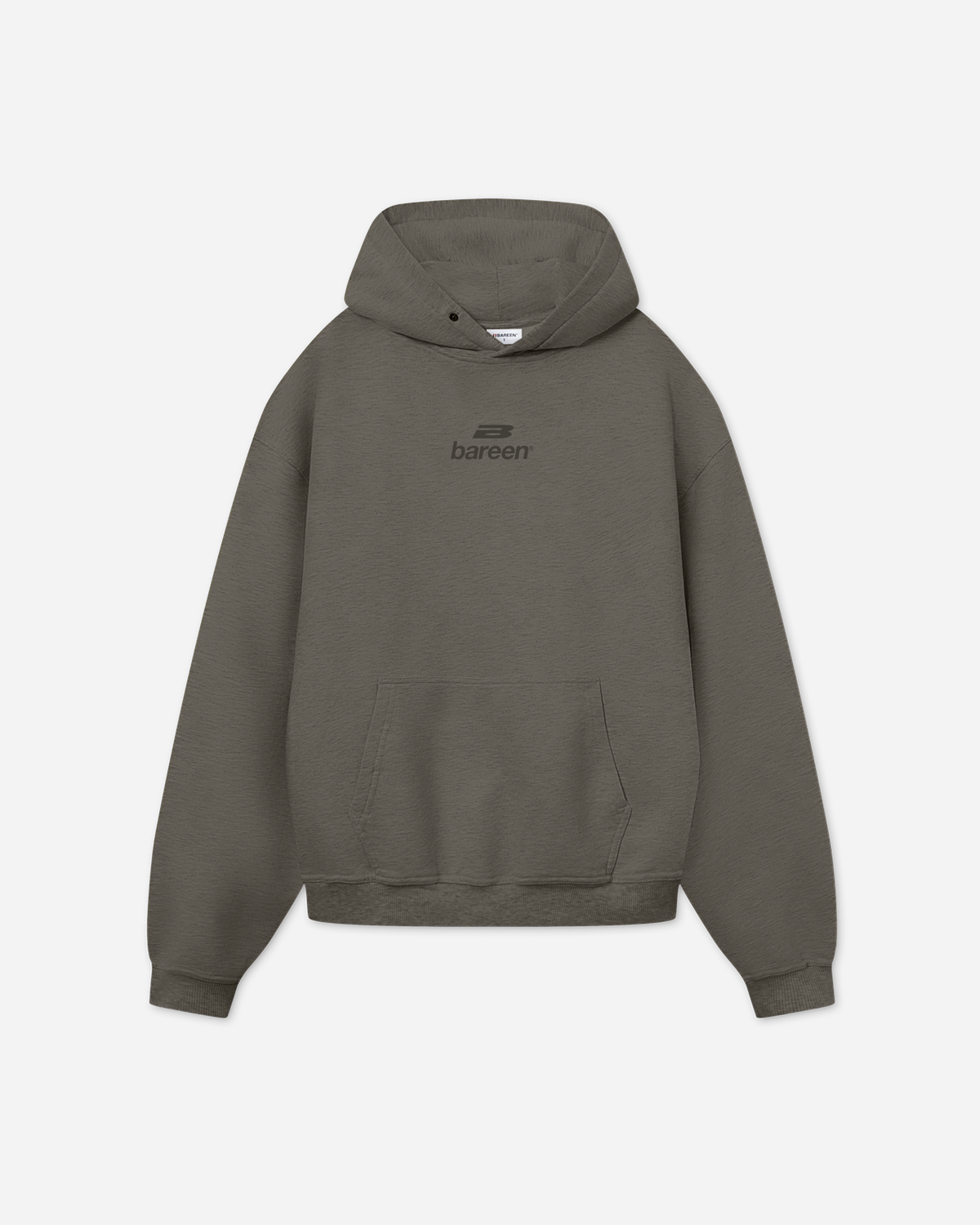 Bareen Logo Oversize Hoodie - Stone Grey er en moderne, rummelig trøje med opdaterede logodetaljer på bryst og ryg. Den kraftige hætte med frontknapper giver et rent, markant look, og 100% økologisk bomuld gør den blød, tung og holdbar.