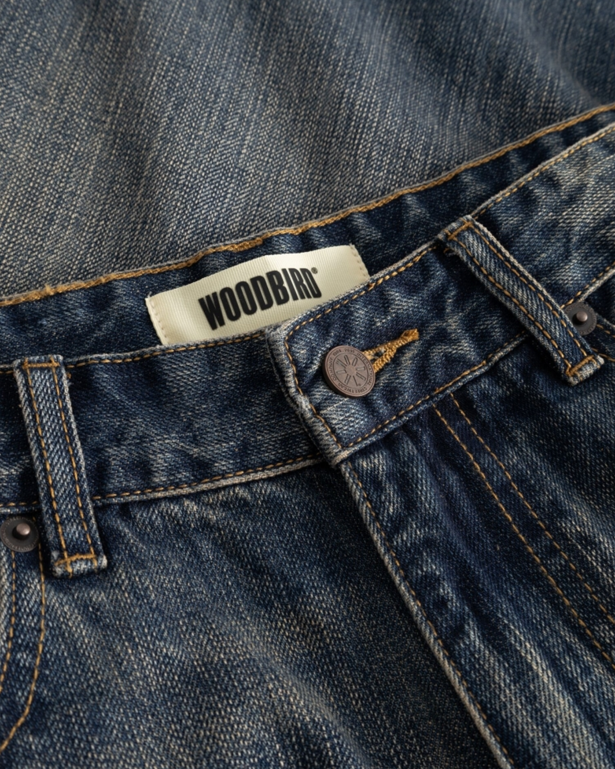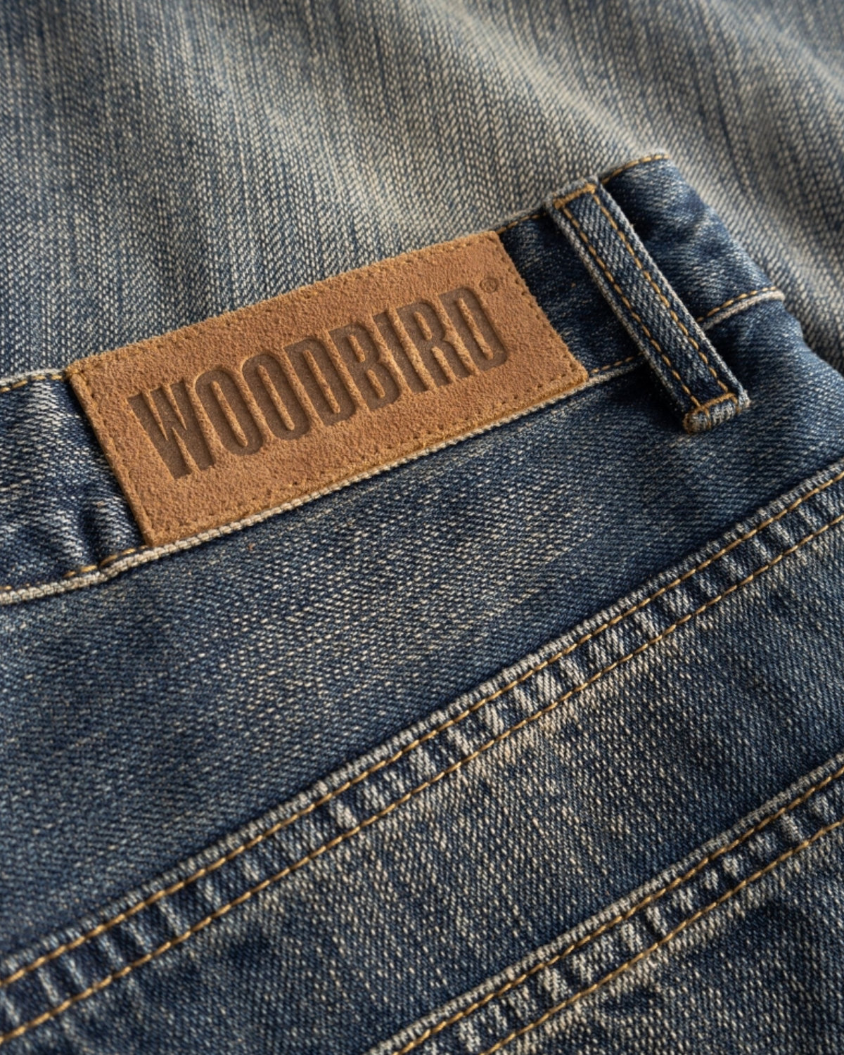 WBRami Stone Shorts - Blue fra Woodbird giver et klassisk denimlook i en blå vask med en afslappet pasform, der er behagelig hele dagen og nem at style. Shortsene har den velkendte 5-lommesilhuet, knap- og lynlåslukning samt fine sømdetaljer. Bagpå finder du en diskret patch med Woodbird-logo, som runder det hele af med et rent, moderne look.