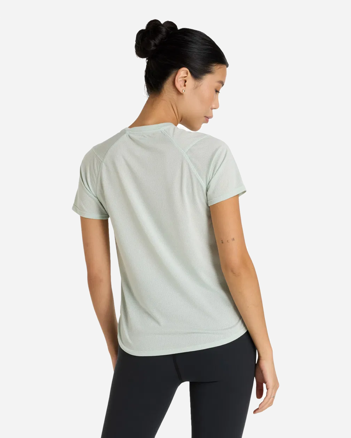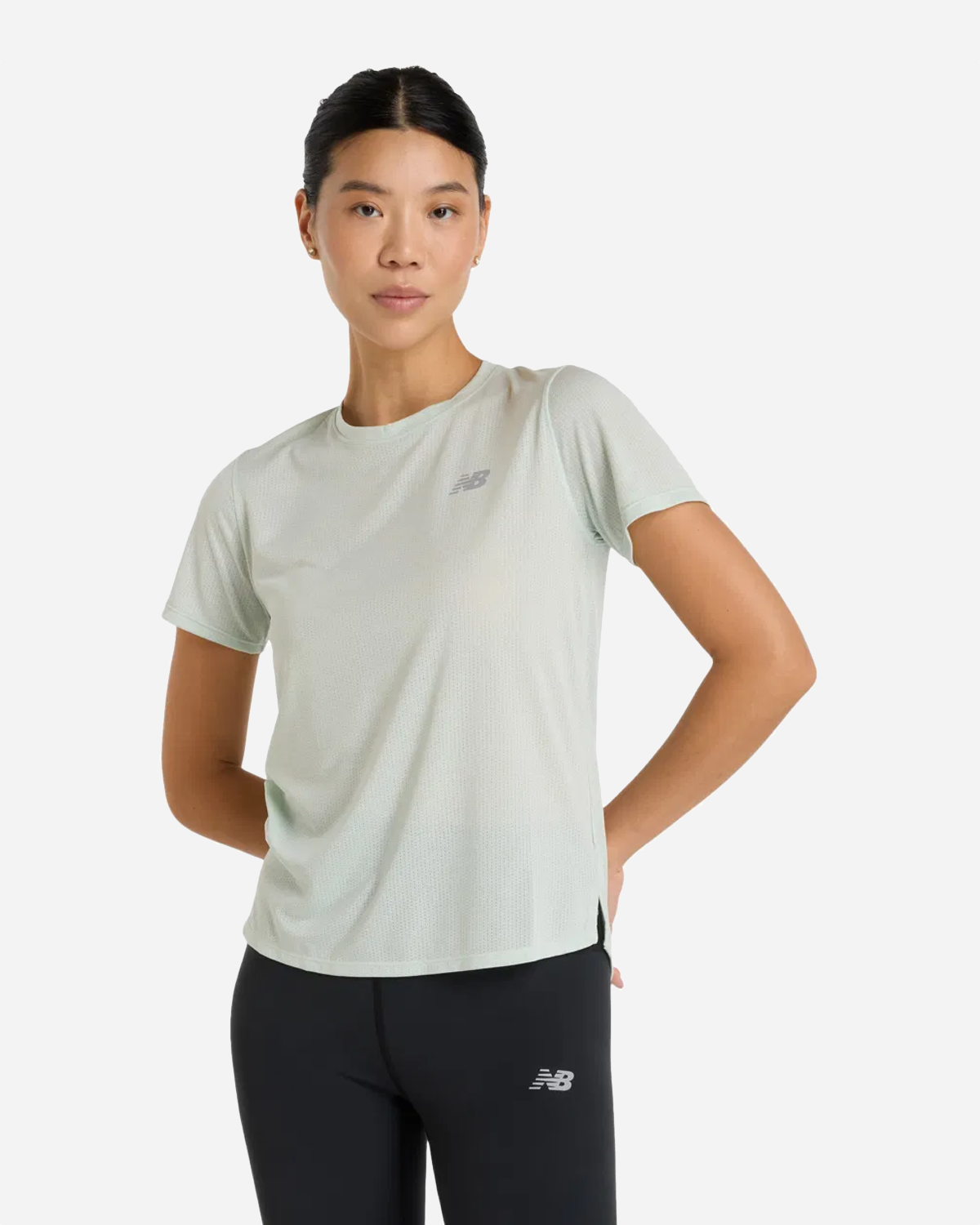Athletics T-Shirt Women - Ash Heather fra New Balance er en let og åndbar løbetrøje i mesh af 100% polyester. Den føles luftig på kroppen og er nem at have på, uanset om turen er kort eller lang.