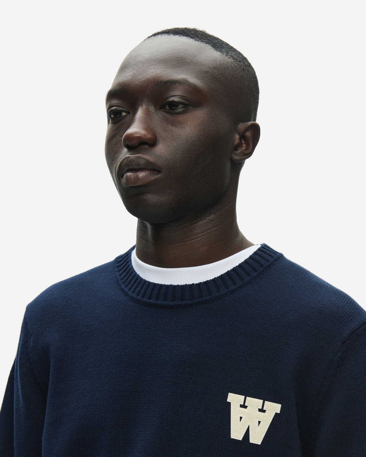 WWTay - Dark navy fra Wood Wood er en enkel trøje i 100% bomuld med rund hals og regular fit. Pasformen giver en ren, afslappet silhuet i hverdagen. Ribkanter holder formen og giver et pænt finish, og den lille bogstavspatch på brystet er en diskret Wood Wood detalje.