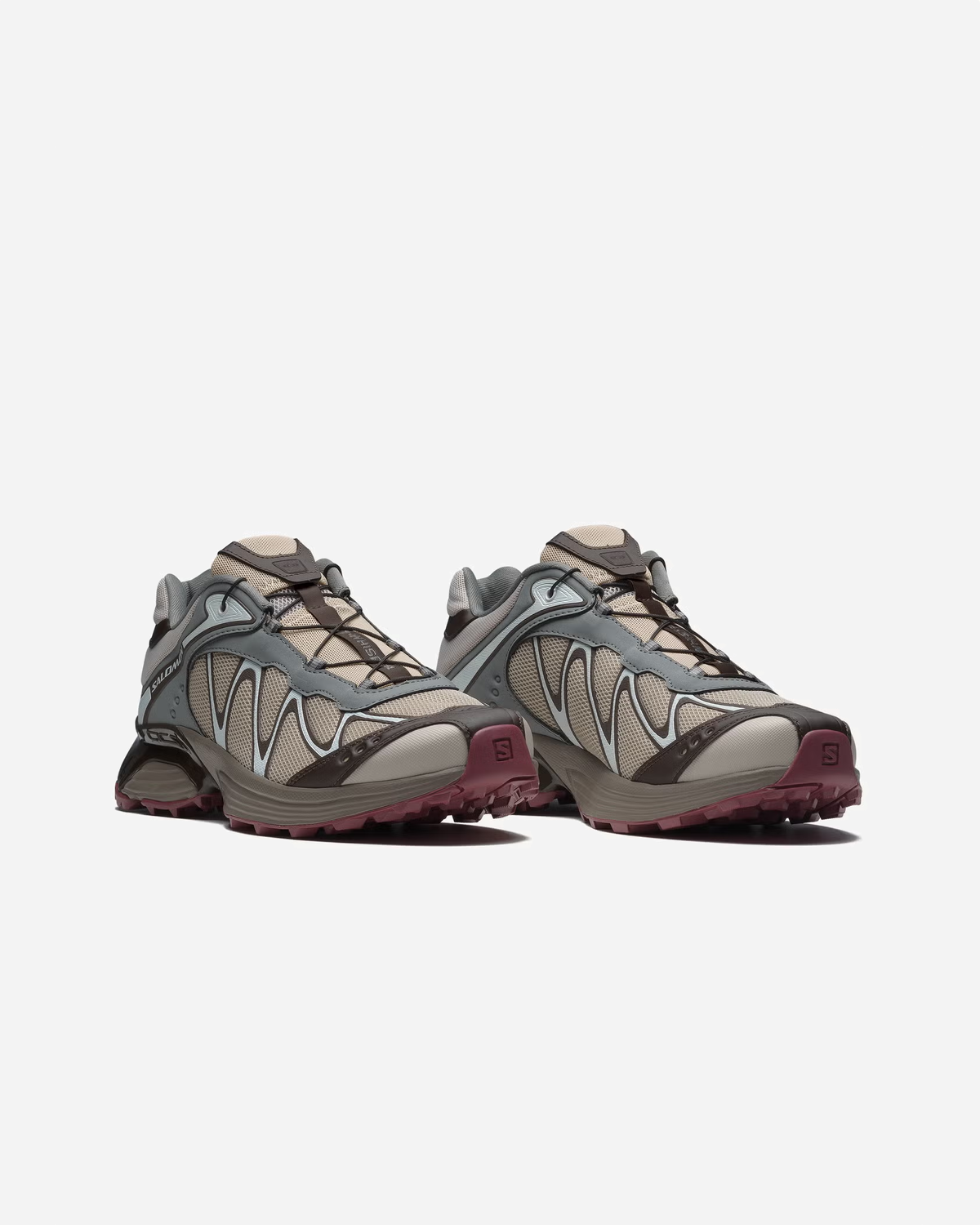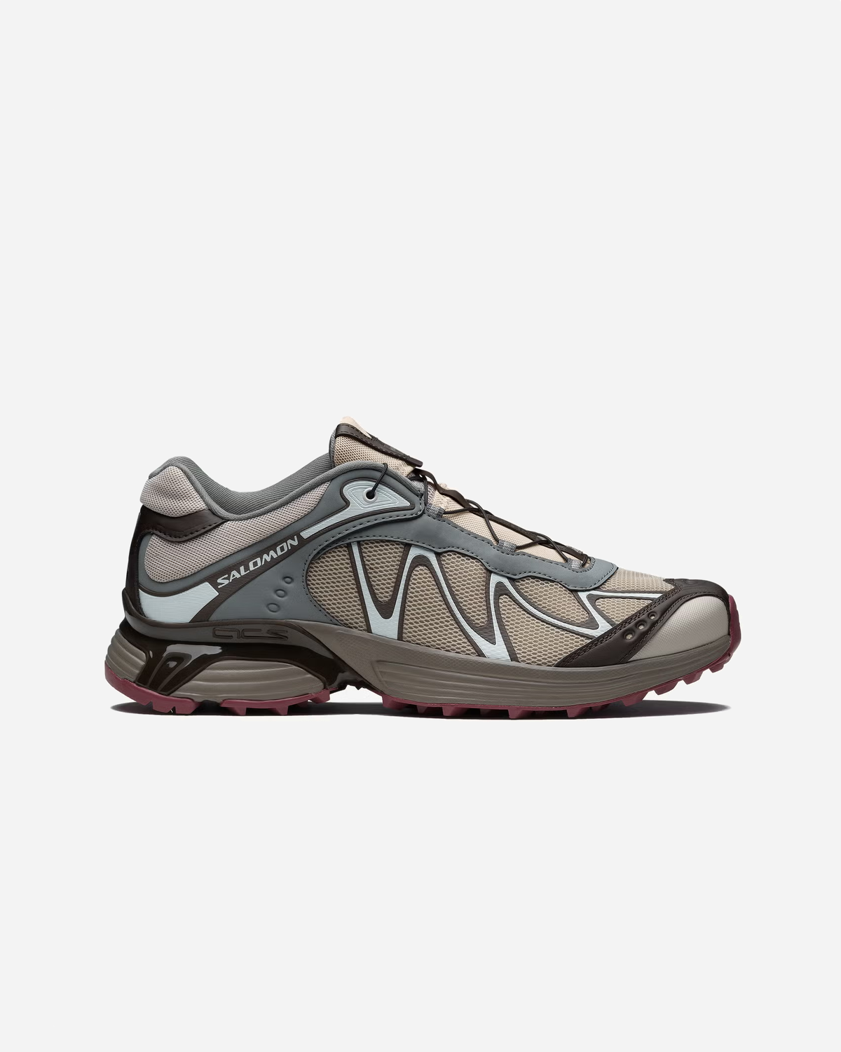 Overdelen er lavet i åndbar mesh med TPU-overlæg og varmeforseglede kontrastdetaljer, som giver let støtte uden at blive tung. En polstret krave og gummiforstærket tåkappe giver ekstra beskyttelse, så XT-WHISPER fungerer både i byen og på stierne. Salomons quickLACE strammes med ét træk og giver en hurtig, præcis pasform.