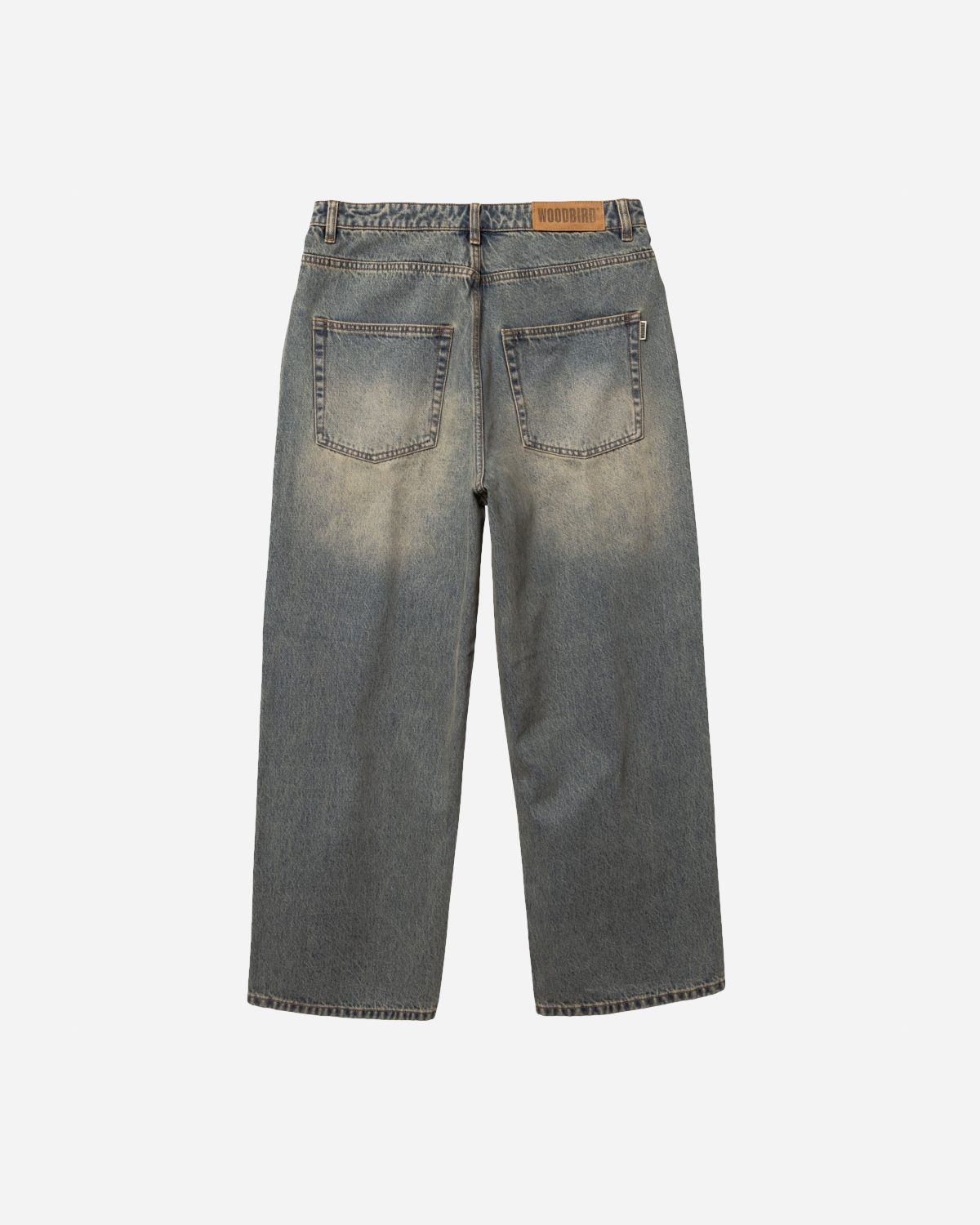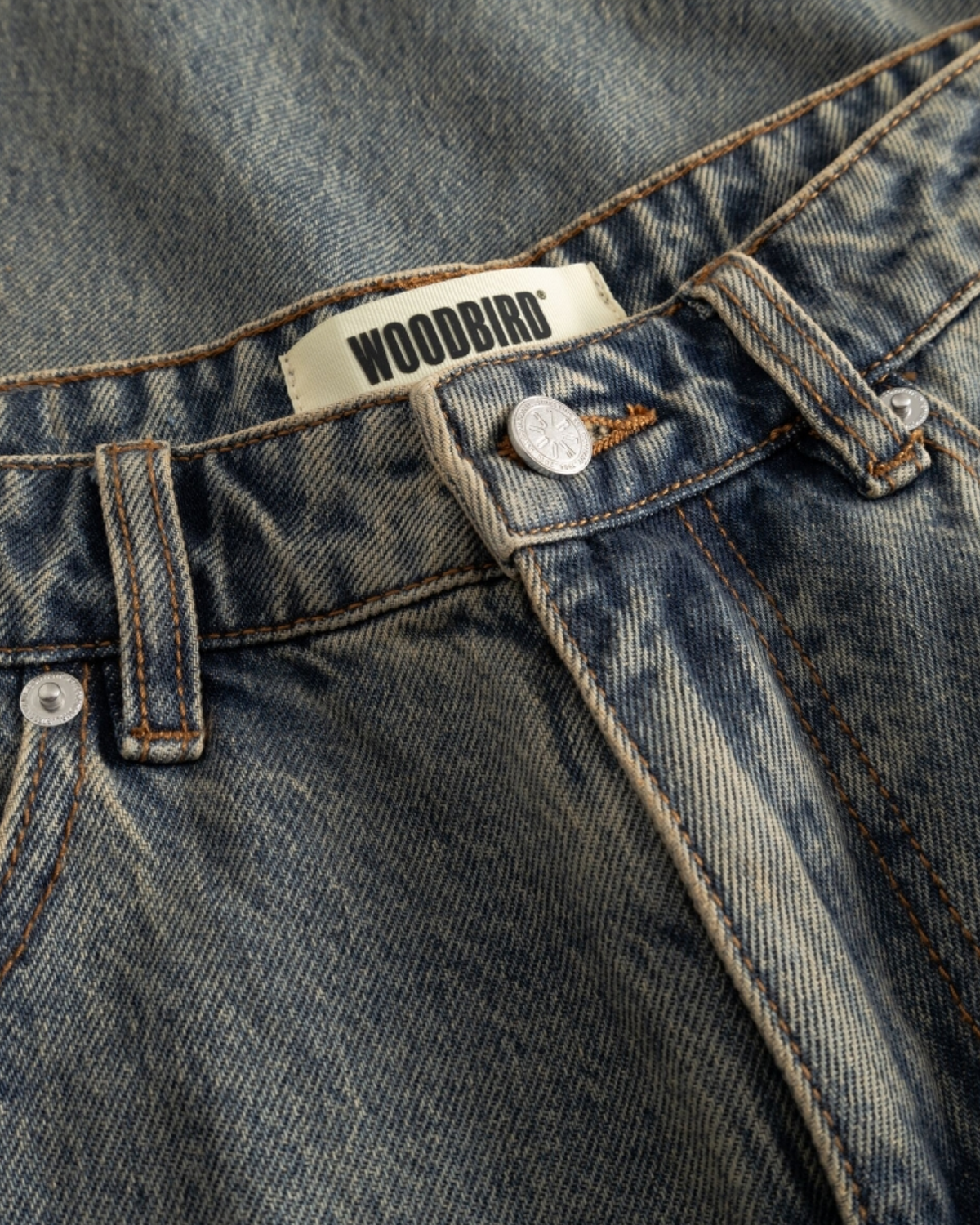 Yuto Aged Jeans - Dark Blue fra Woodbird er et par bukser med en rummelig, baggy pasform og et moderne look. De er lavet i 100% bomuld, så du får den ægte denimfornemmelse og komfort, der fungerer i hverdagen.