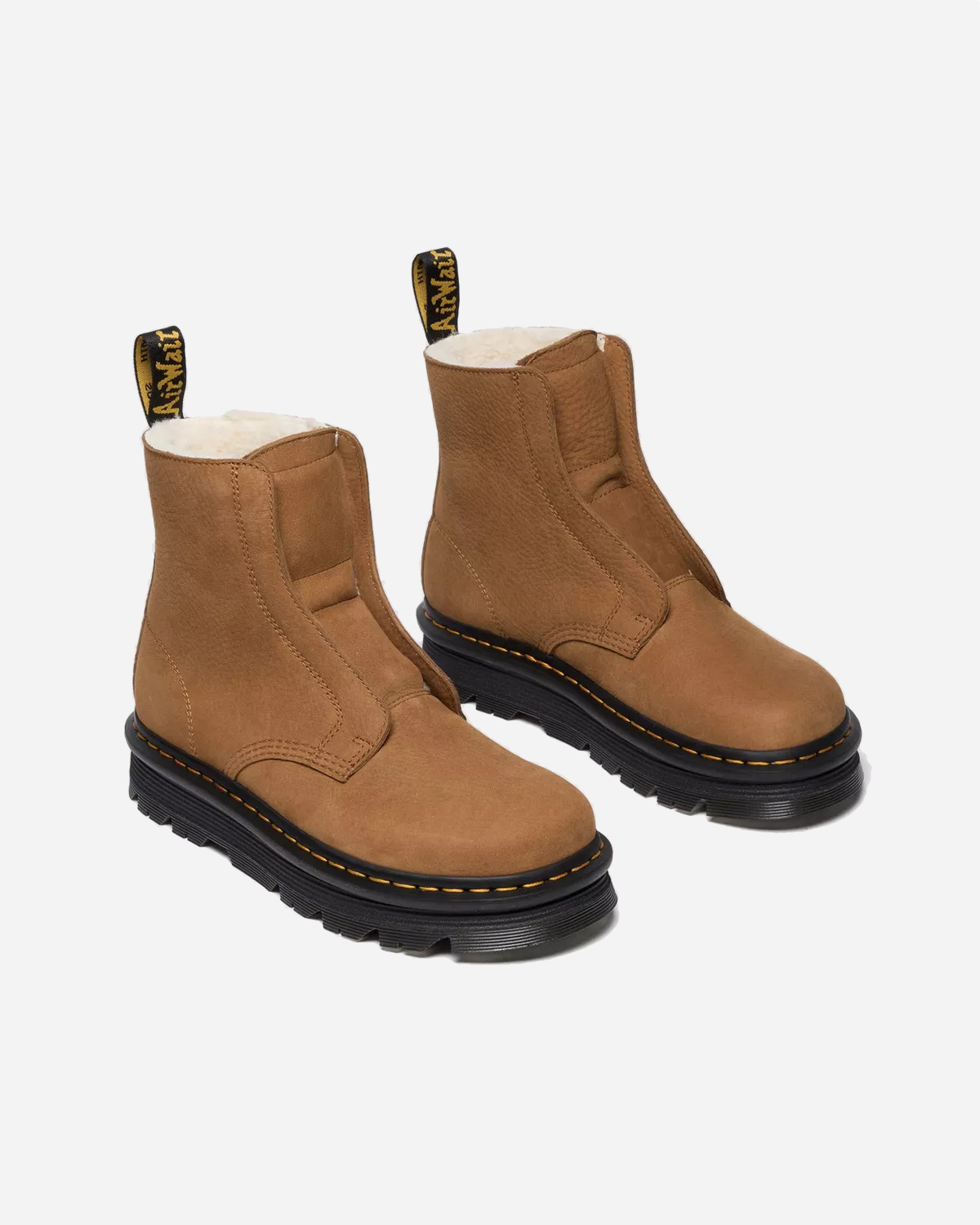 Dr. Martens Zebzag Laceless er en varmforet slip-on-støvle i milled nubuck med fokus på komfort og enkelhed. Den snøreløse konstruktion gør den nem at få af og på, og den bløde foring holder fødderne behagelige på kølige dage. Desert Brown er en jordnær, rolig farve, der er let at kombinere med det meste i hverdagen.