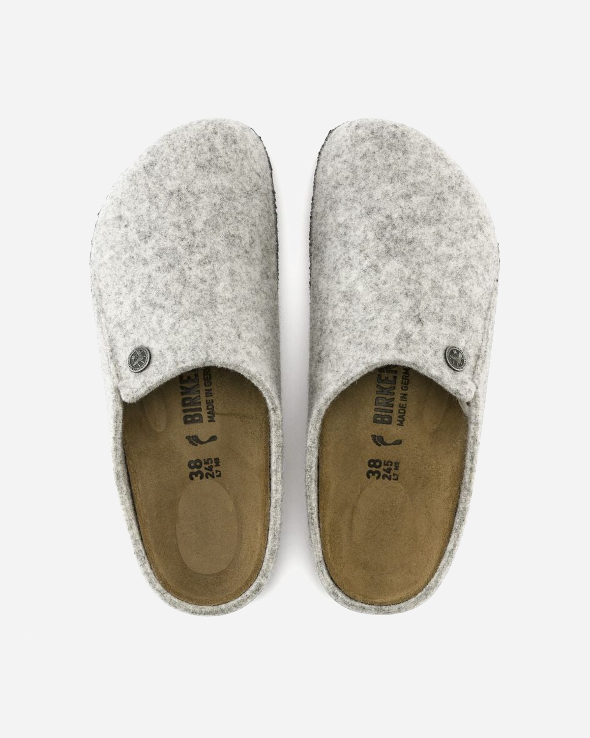 Birkenstock Zermatt Shearling i Light Gray er en unisex-hjemmesko, der løfter hverdagskomforten. Den bløde overdel i uldfilt lægger sig behageligt om foden, mens den varme shearling-foring giver en lun følelse fra første skridt. Den konturerede kork-latex fodseng støtter naturligt og aflaster, så dine fødder får ro – også på kølige gulve.
