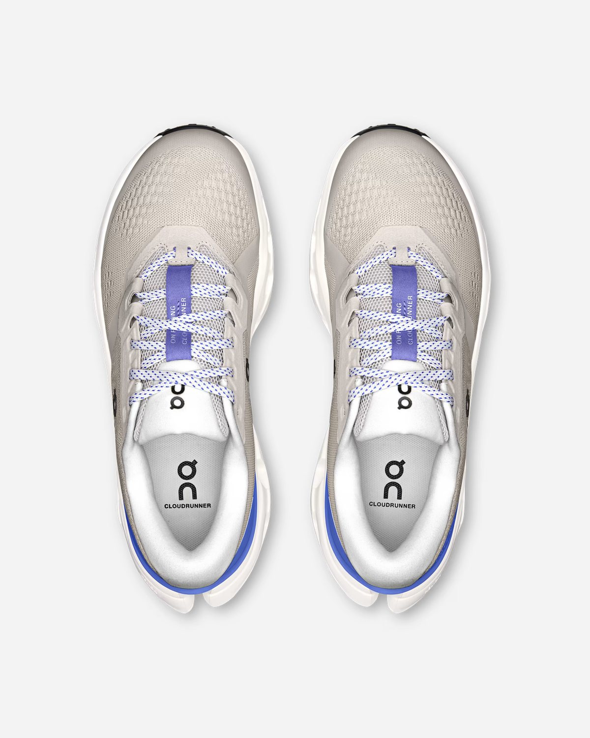 Overdelen er 100% genanvendt mesh udviklet i Schweiz, som føles let og åndbart. En forbedret gummiydersål sikrer godt greb, og refleksdetaljer øger synligheden i svagt lys. On Cloudrunner 3 Pearl / Sailor fungerer til daglig træning, gåture og som en behagelig Løbesko i hverdagen.